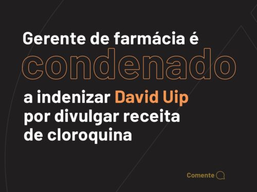 GERENTE D FARMÁCIA É CONDENADO A INDENIZAR DAVID UIP POR DIVULGAR RECEITA DE CLOROQUINA.