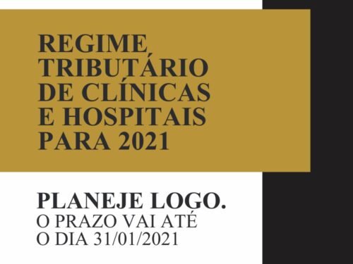 REGIME TRIBUTÁRIO DE CLÍNICAS E HOSPITAOS PARA 2021. PLANEJE LOGO. O PRAZO VAI ATÉ 31/01/2021.