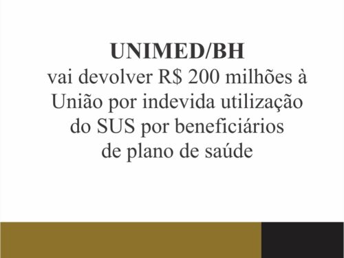 UNIMED/BH VAI DEVOLVER R$200 MILHÕES À UNIÃO POR INDEVIDA UTILIZAÇÃO DO SUS POR BENEFICIÁRIOS DE PLANO DE SAÚDE.