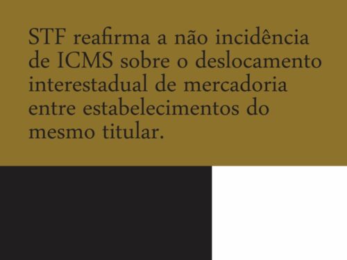 STF REAFIRMA A NÃO INCIDÊNCIA DE ICMS SOBRE O DESLOCAMENTO INTERESTADUAL DE MERCADORIA ENTRE ESTABELECIMENTOS DO MESMO TITULAR.